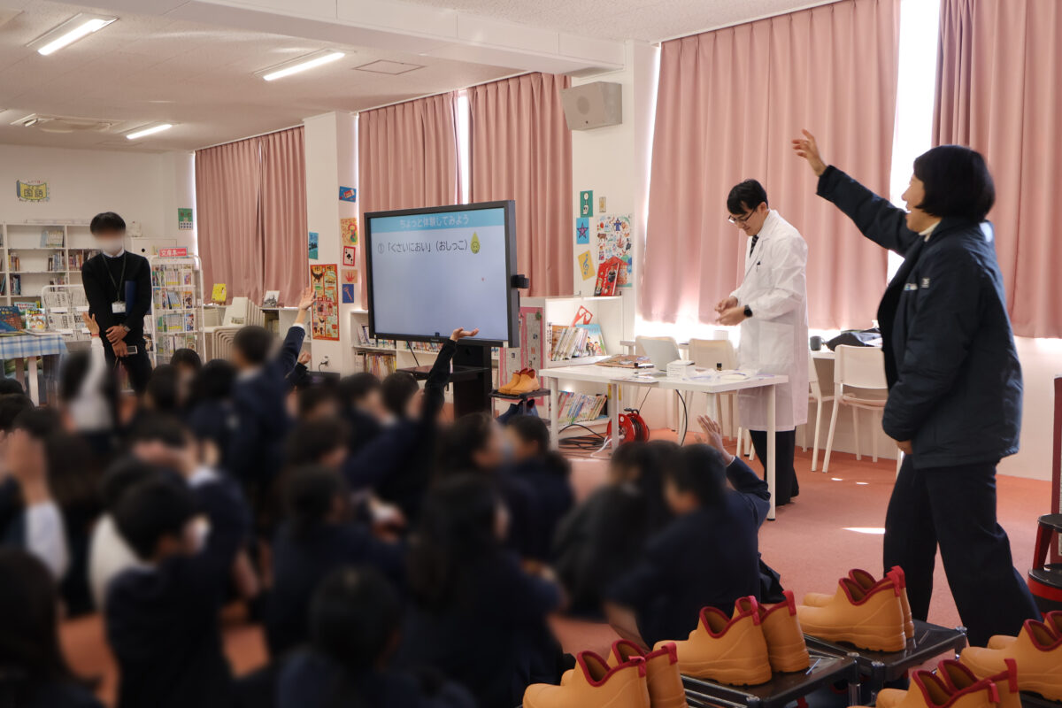 この度弊社は、2月17日に福山市立千田小学校で実施された「小学校トイレきれいプロジェクト」での出前授業に参加し、トイレ掃除用に防水性に優れた「カルサーワンM-4」「カルサーワンL-4」を寄贈いたしました。